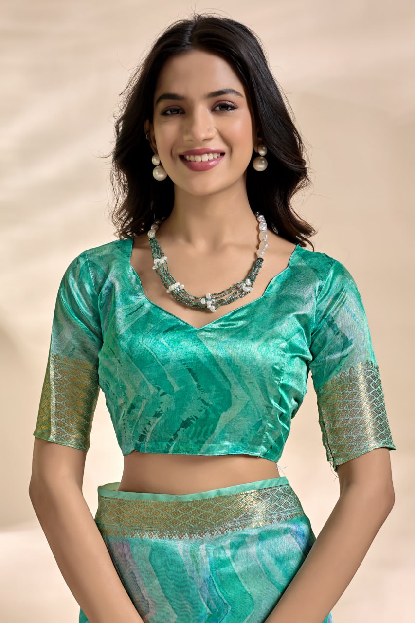 This elegant Sea Green Soft Silk Blend Saree is crafted for women who love a graceful and traditional look.